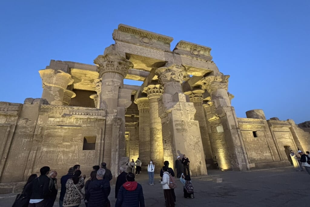 ナセル湖クルーズを終え、後半は「アムワージュ・リビングストン号」で3泊4日のナイル川クルーズへ。こちらはエジプト旅行の王道ともいえるルートで、フィラエ神殿、コム・オンボ神殿、エドフ神殿、そしてルクソールの神殿群など、古代エジプトを代表する名高い遺跡を巡りました。船が行き交うにぎわいのあるナイル川を進みながら、遺跡ごとに異なる時代や信仰の特色に触れられるのは、この区間の魅力です。途中ではエスナの水門通過も見学し、クルーズならではの旅情を味わえました。
