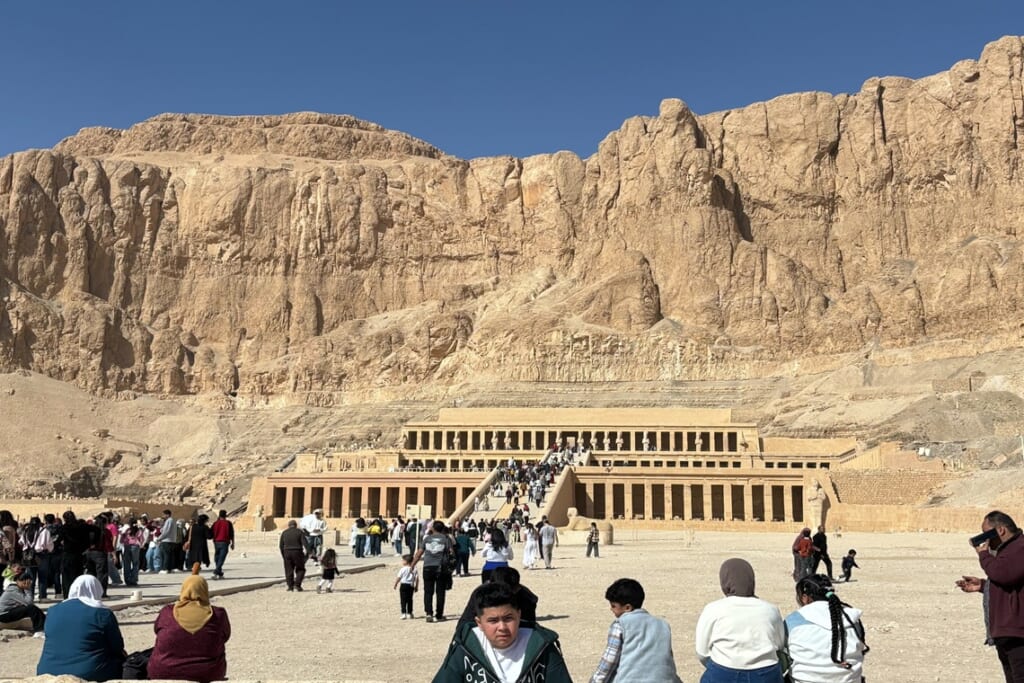 岸壁に囲まれ見事な佇まいのハトシェプスト女王葬祭殿