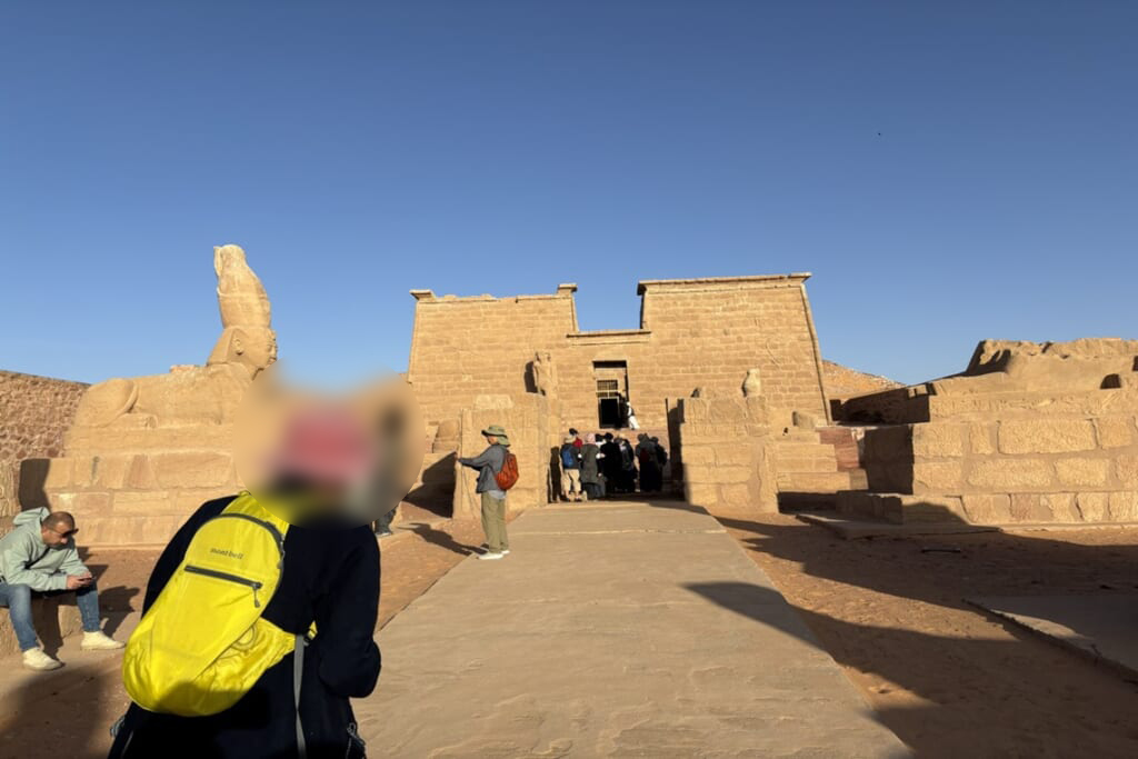 今回の旅の大きな柱のひとつが、「オマール・エル・カヤム号」で3泊4日を過ごしたナセル湖クルーズです。通常のナイル川クルーズには200隻以上が運航しているのですが、ナセル湖を航行するクルーズ船はごく限られ、2~3隻だけなのです。アマダ神殿、ワディ・エル・セブア神殿、ダッカ神殿など、移築されダムによる水没から守られたヌビア遺跡は、広大で静かな景色の中にひっそりと佇んでいるような趣があり、落ち着いた空気のなかで古代遺跡と向き合う時間となりました。