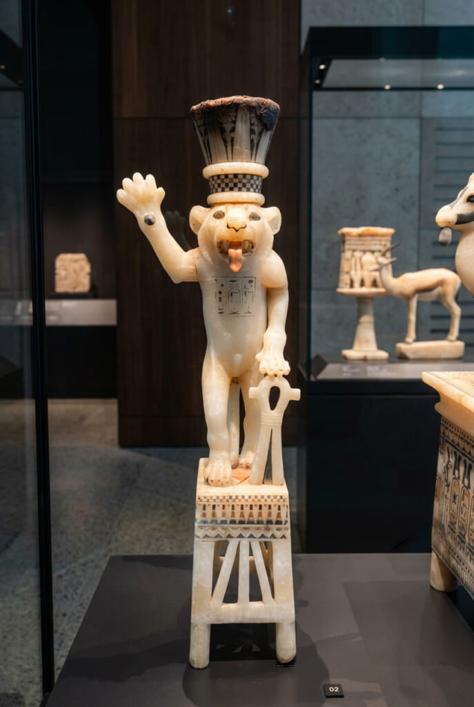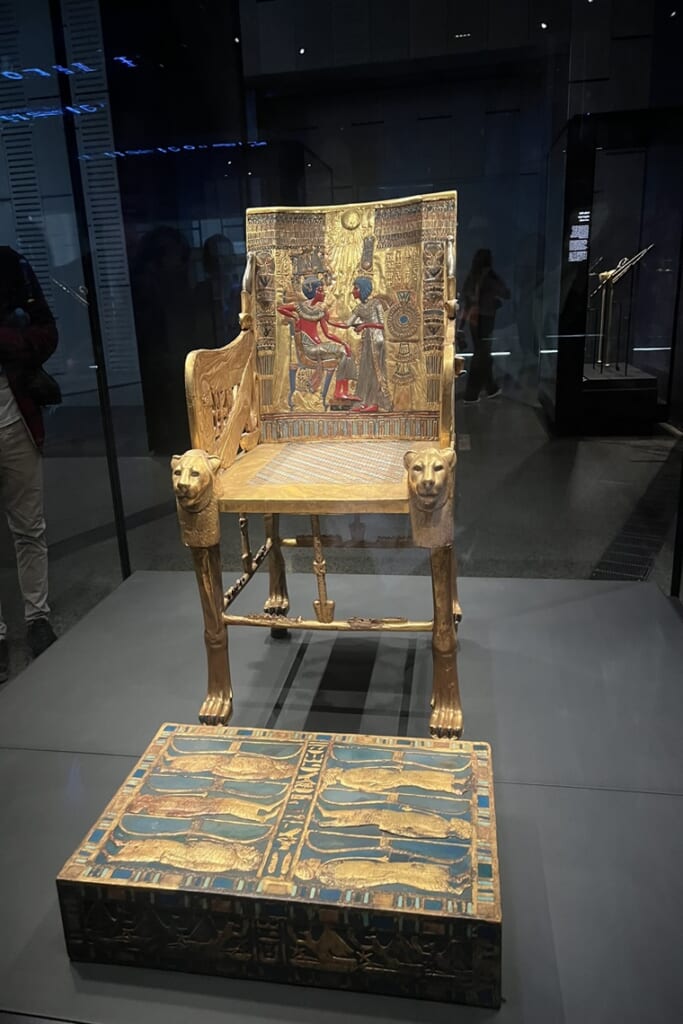 中でも、有名なツタンカーメンと王妃アンケセナーメンが描かれた椅子は本当に綺麗でした。王妃アンケセナーメンがツタンカーメンにオイルを塗ってあげていて、1つのサンダルを片足づつ履いている様子は本当にラブラブなカップルだったのだと改めて感じました。