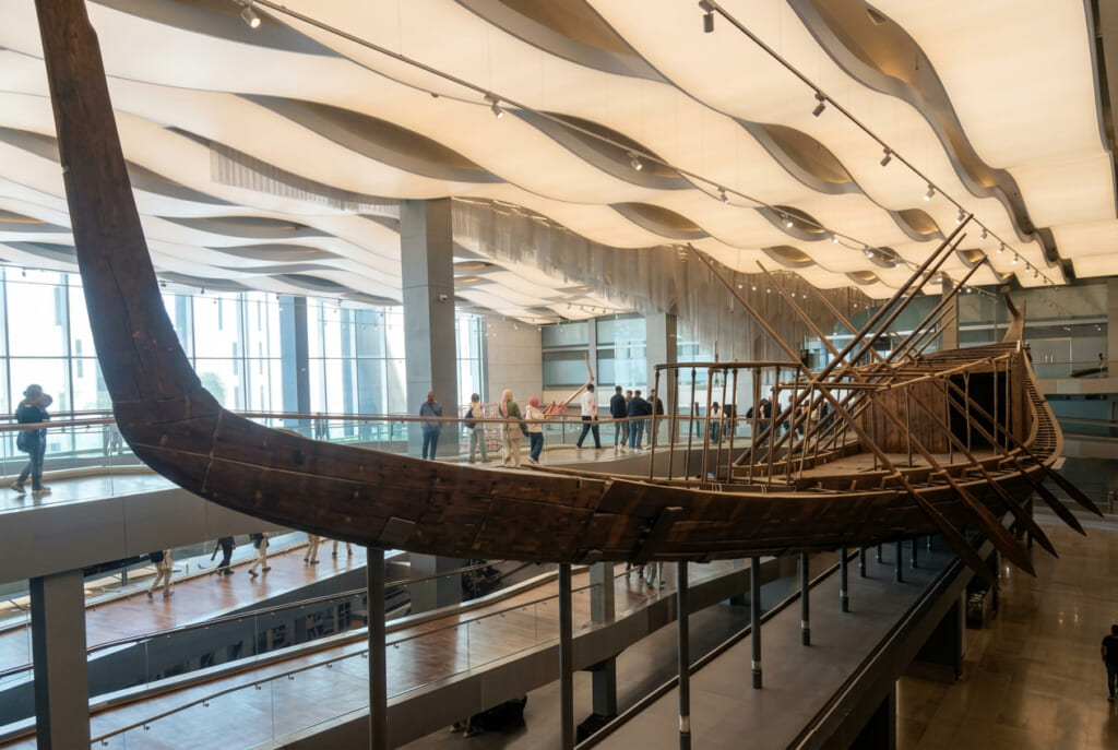 以前はギザの三大ピラミッド横に展示されていた太陽の船も、太陽の船専用の展示室にて吉村先生の功績とともに紹介されていました。