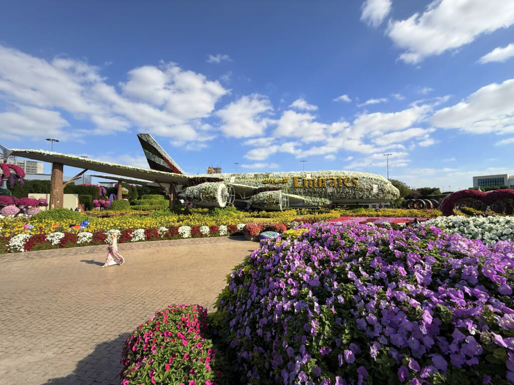 ミラクルガーデン(世界最大の植物園)で展示されるエミレーツ航空A380