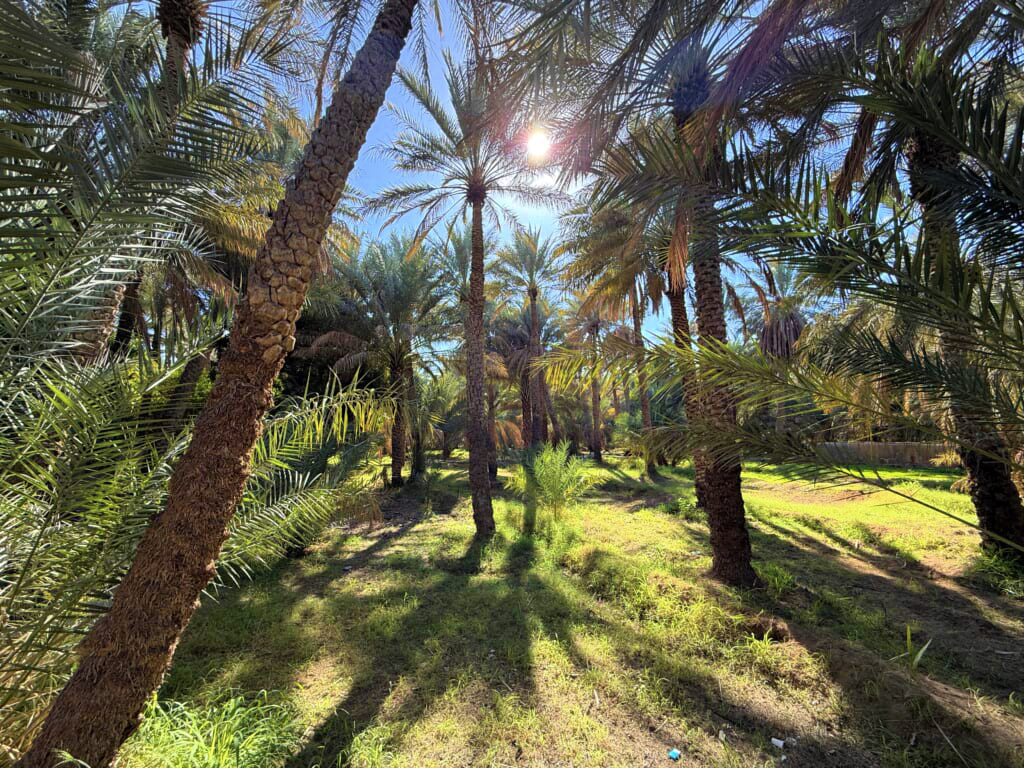 ヤシの木だけでなく多くの果物が生い茂るオアシス