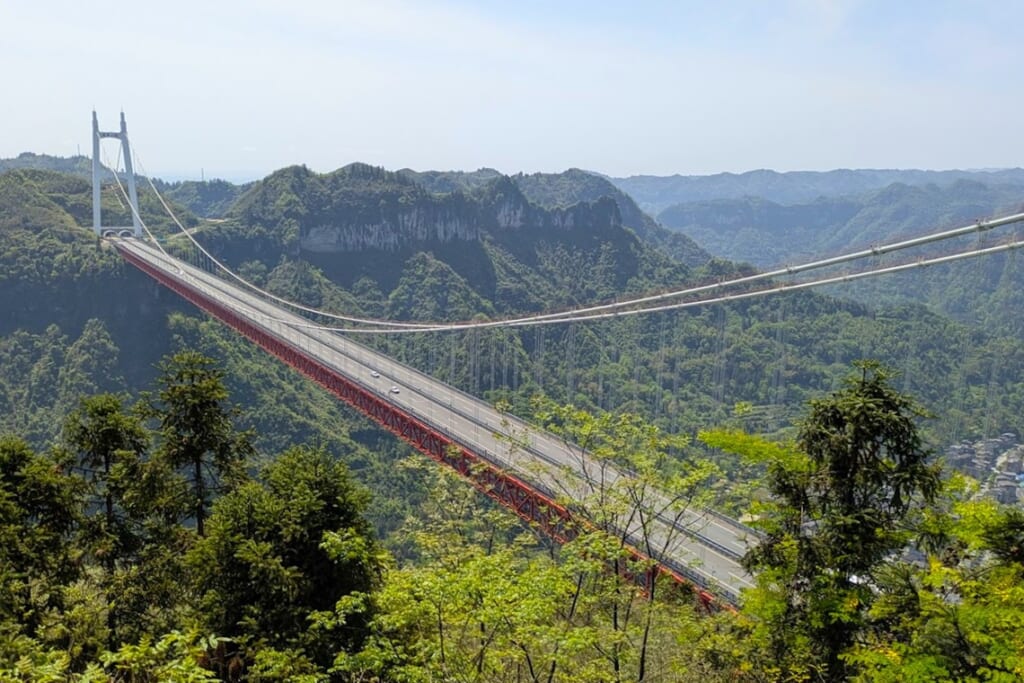 峡谷に架かる巨大吊り橋「矮寨大橋」