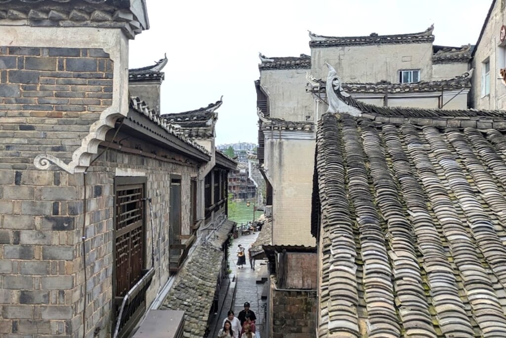 鳳凰古城は、トゥチャ族とミャオ族が主に暮らす少数民族の町です。町には沱江(だこう)が流れ、その両岸には「吊脚楼」と呼ばれる高床式建築が建ち並びます。今回は昼の鳳凰、夜の鳳凰と二つの表情をご覧いただきましたが、多くの国内観光客が訪れとても賑わっていました。