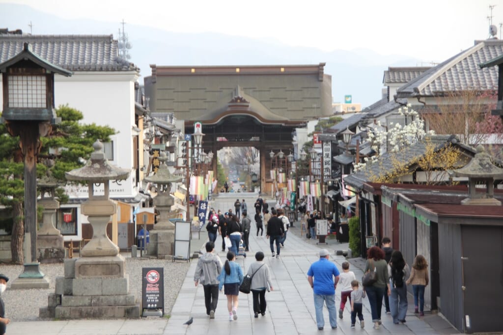 長野県の県庁所在地である長野ですが、町の規模自体はそれほど大きくありません。1997年10月、翌年の長野オリンピック開催にあわせて長野新幹線が開業されるまでは碓氷峠越えでも有名な信越本線で関東地方とつながっており、空港もなかったため東京~長野は3時間程度と「東京から所要時間で最も遠い県庁所在地」とも言われていました。2015年に金沢まで北陸新幹線が開通したことで北陸と東京を結ぶ中継都市として発展を遂げ始めています。多くの県庁所在地は江戸時代の藩の中心として「城下町」であることが多く町の中心には「城」がありますが、長野は前述したように善光寺の門前町。町の中心にはかつての参道が真っすぐに延び、人々を善光寺へと誘います。