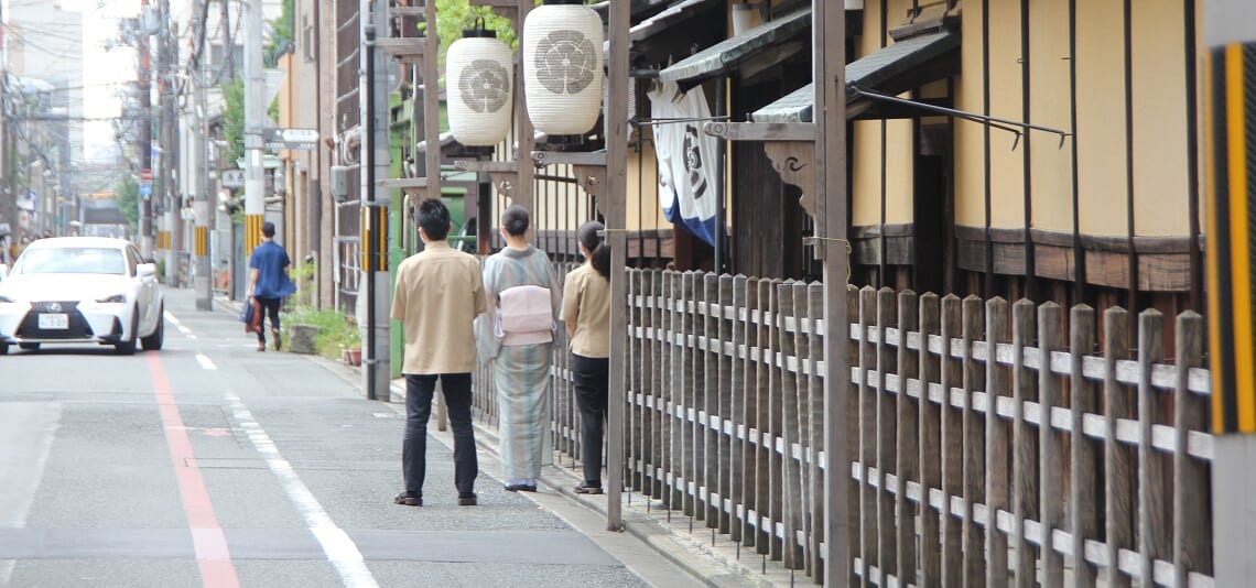 なぜいきなり「麩屋町通」というあまり知られていない小路をご紹介するのか。それは、この小さな道に、京都を代表する歴史的な三旅館が並び立っているからです。「俵屋」「炭屋」「柊屋」創業以来多くの文人や賓客をもてなしてきた「京の御三家」は、この麩屋町通のわずか500mほどの距離に並んでいます。全てに宿泊、とはなかなかいきませんが、それぞれが持つ重厚な門構えや宿を発つ人を見送るスタッフの姿など道を歩くだけでも物語が見えてくるようです。