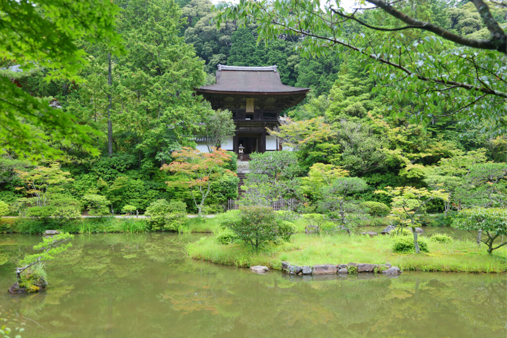 円成寺でまず目に入るのが、楼門前に広がる優雅で美しい庭園です。平安時代末期に造成されたとみられています。平安から鎌倉時代にかけて貴族の住宅に流行した寝殿造の庭園に類似しているとされ、寺院としては阿弥陀堂の前面に広がる浄土式庭園として、奥州平泉(岩手県)の毛越寺庭園とともに貴重な遺構となっています。