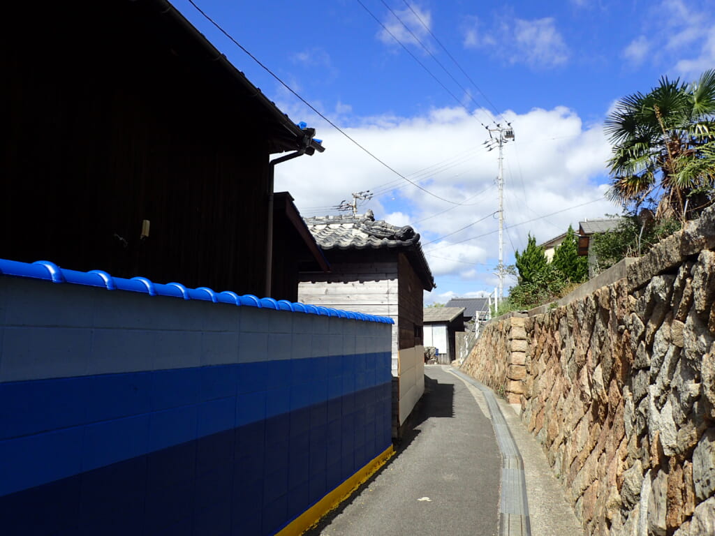 瀬戸内海には直島や豊島など、「アートの島」がいくつかありますが、実はここ男木島も「アートの島」のひとつで、「路地壁面プロジェクト wallalley」なるものがあり、坂道の石段や石畳が美しい男木島の路地を歩くと、カラフルなペインティングが施された壁画と出会うことができます。