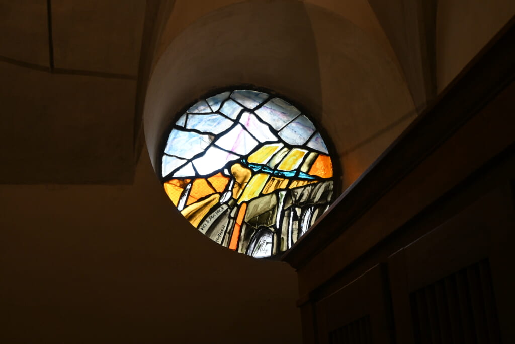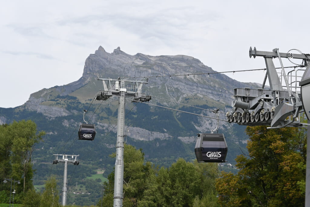 サン・ジェルヴェはモンブラン山塊を背景に佇む小さな村。2024年に鉄道駅と村を結ぶロープウェイが開通したと観光局に教えていただき、今回の視察に組み込みました。眼下に村や渓谷を望む空中散歩を楽しみながら、村の中心近くの駅に到着。静かな村を散策して、特に印象的だったのが教会でした。外観は素朴ながら、内部は美しく装飾され、色鮮やかなステンドグラスが配されていました。