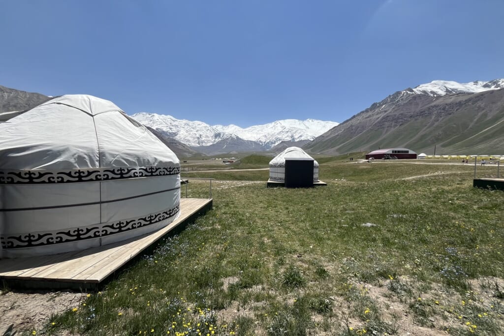 また、オシュから車で5時間ほどのところにはキルギスとタジキスタンとの国境にそびえる高峰レーニン・ピーク(標高7,134メートル)を望むベースキャンプがあり、ここも訪ねました。ユルト式の宿泊施設は魅力的でしたが、滞在するキャンプの標高が3,600メートルと高所でありながら、高度順応が難しく悪路も多いことなどから、企画化を断念しました。
