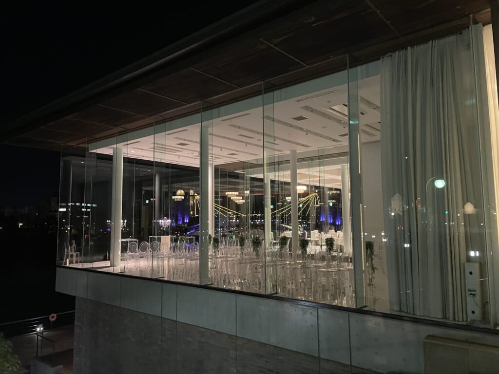2016年にミシュラン1つ星を獲得したフレンチレストラン「キュイジーヌフランセーズラ・シャンス」では、地元の新鮮な食材を使用した全6品のフレンチコース料理をお楽しみいただきました。部屋に入ると大きなガラス張りの窓からは環水公園の美しい夜景がお出迎え。皆様で乾杯をし、最後の夕食に舌鼓。食事が終わると、お店のパンフレットを頼まれている方や、このレストランだけを目的にまた富山に戻ってくるとおっしゃる方もいて、大変ご好評いただきました。