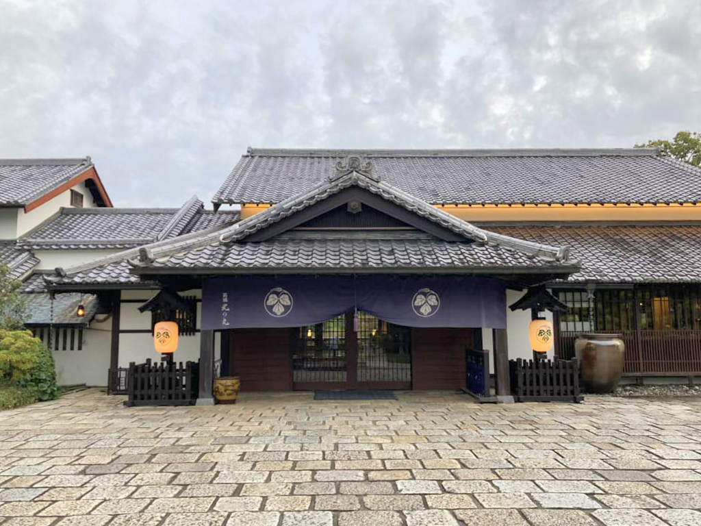 葛の植物が生える地に、古代には砦があったことから「葛城」、そして江戸城・皇居の一角でお殿様・姫君が滞在するかのように寛ぎの空間をと「北の丸」、と創業者が名付けました。ピアノやバイク等でその名を世界の隅々まで知られているヤマハの本拠、遠州でのホテル事業が葛城北の丸です。移築してきた古民家をベースに造られ、城郭に相応しい入り口の門、むき出しになった梁がいかにも和風建築のロビーが、宿泊者を迎えてくれました。ラウンジでウェルカムティーをいただいた後、施設内の説明を受けながら客室へ。部屋からは庭の眺望が広がり、やはり城郭風の露天風呂も楽しめました。