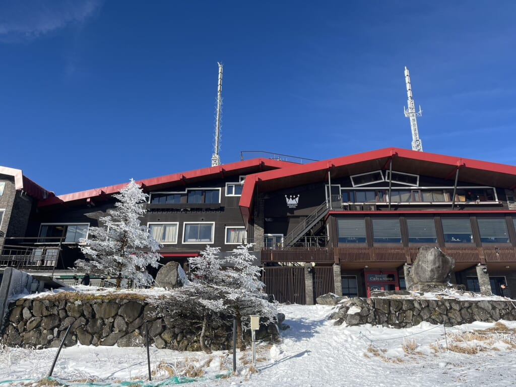 1日目は「王ヶ頭ホテル」に宿泊です。冬期は周辺道路が通行止めとなり、一般の方は立ち入れない場所にあります。到着時はあいにくの悪天候で雪上車クルージングはできませんでしたが、翌朝は青空が広がり、美しい山並みをと雪景色をご覧いただきました。ホテルへのチェックイン後は心癒される展望風呂や、テラスやカフェ、ちょっとした読書スペースなど趣のある館内で、皆様思い思いの時間をお過ごしいただきました。