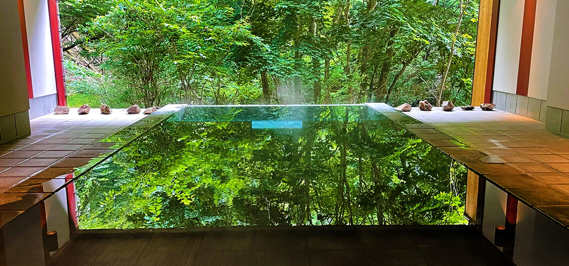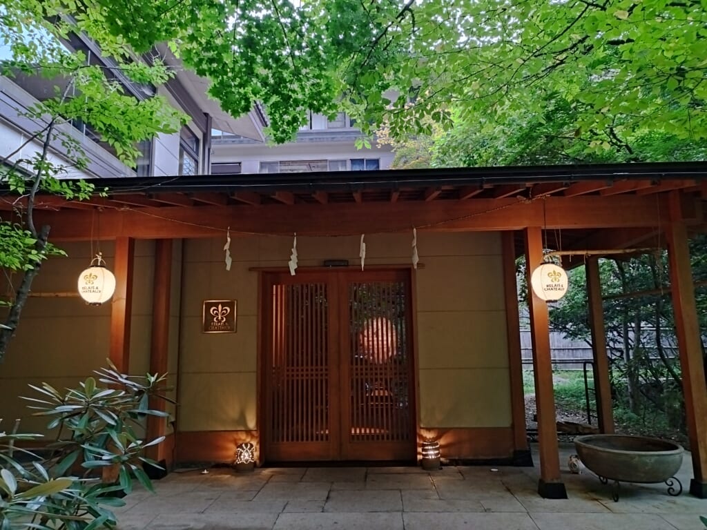 ルレ・エ・シャトーの一つ、扉温泉明神館へ行ってまいりました。旅館の入り口は緑に囲まれ、ルレ・エ・シャトーの提灯やしめ縄が印象的でした。和と洋が調和した館内は、ユニークでありながら居心地の良さを感じさせてくれます。こだわりのお食事には、地元の旬の食材に様々な趣向が凝らされており、明神館のスタッフが栽培した野菜やお米も使われているのだそう。新鮮な食材がおいしさの決め手の一つなのだと思いました。日本各地で35℃以上の猛暑日が続く頃でしたが、風が爽やかでとても涼しく、快適な滞在となりました。