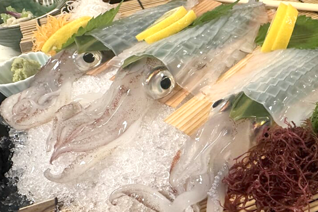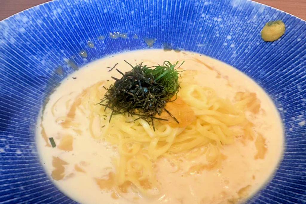 唐津でのお食事は「いけす料理玄洋」で呼子名物「いか活き造り」や新鮮な海の幸、「青天堂」では名物の唐津雲丹パスタなど、地元ならではのうましを堪能。透き通るイカの甘みや、たっぷりの雲丹ソースと黄金の柚子胡椒の香りが絶妙にマッチし、贅沢な味わいでした。