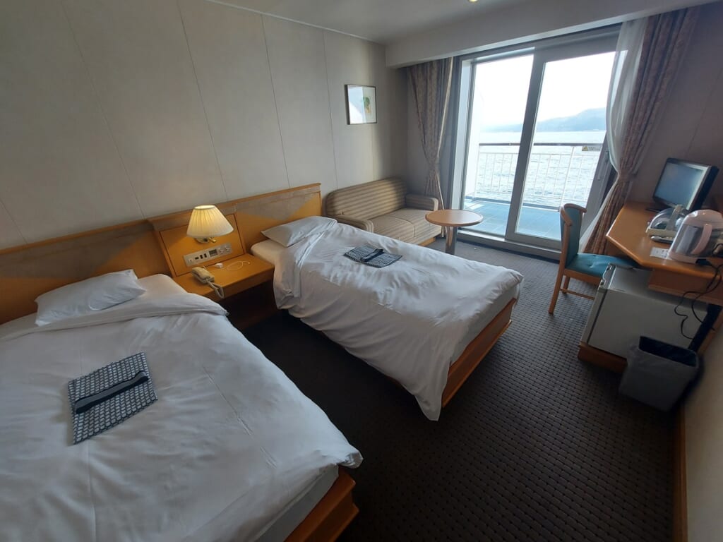 新潟から秋田までは夜間となりますが、他の2区間はフェリーには珍しい昼間の航行。日本海沿岸の風景を船から見ながらの航海となりました。敦賀~新潟間では越前海岸、能登半島。秋田~苫小牧間では男鹿半島、竜飛岬から津軽半島、大間崎、函館山、恵山の絶景を見ることができました。特に船上からの夕暮れの美しさは忘れられないひとときでした。