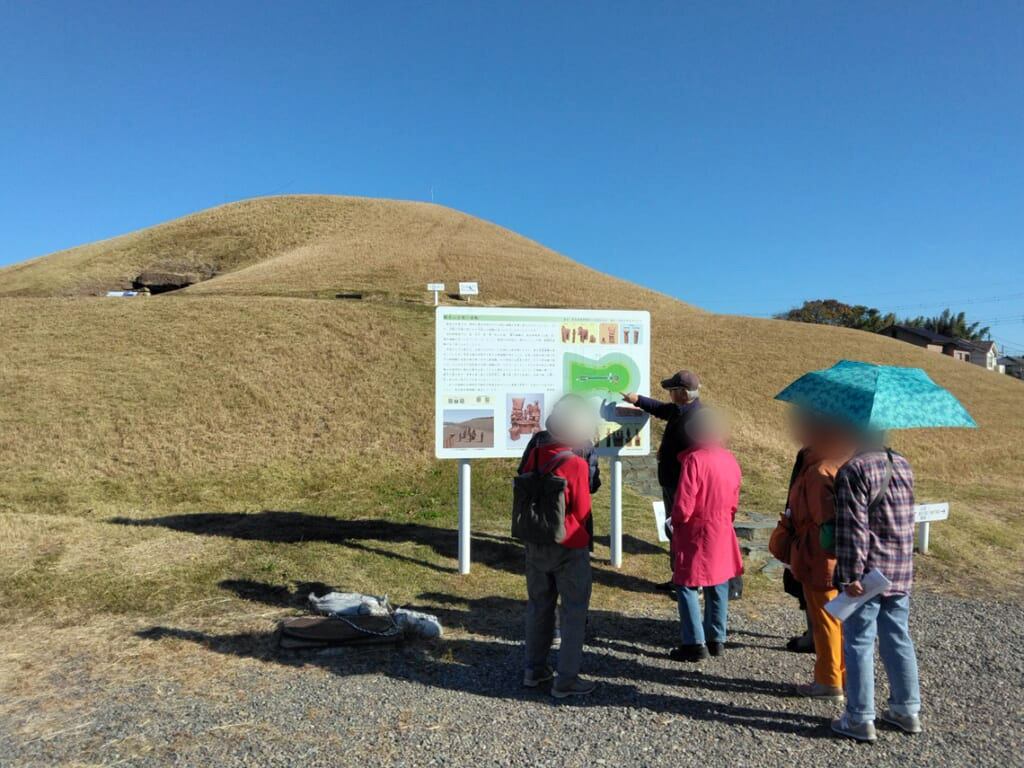個人で訪れることも可能ですが、実際に古墳や埴輪などを目の前にして、解説文を読んでも理解できたようなできないような感じがします。それぞれの古墳では専門の方に解説を依頼していたため、違いや特徴がとてもよくわかりました。特に群馬県内では、群馬県立博物館の顧問である右島和夫先生に約2日間に渡って同行いただき、詳しく、そしてわかりやすく解説していただきました。それぞれの古墳を通じて知る歴史と文化の奥深さは知的好奇心を大いに刺激し、深まる謎に、さらなる関心をお持ちいただけたようです。