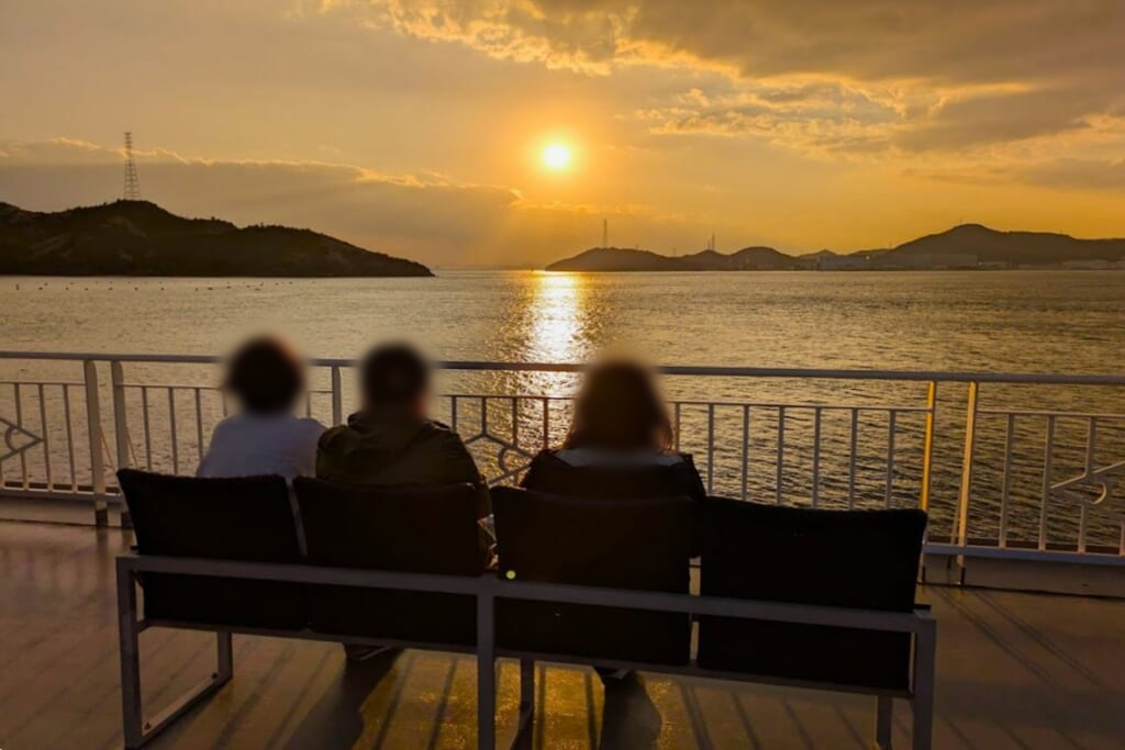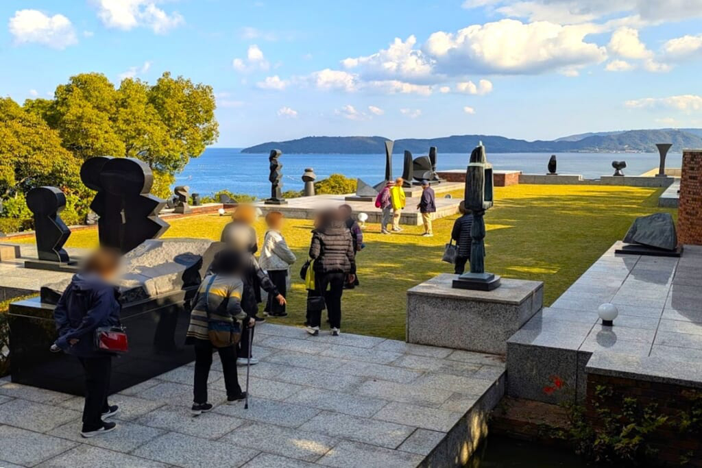 晴れ渡る空の下、フェリーで芸術の島・直島に渡り、「ベネッセハウス ミュージアム」と「地中美術館」を見学しました。その後、再びフェリーで岡山の宇野港に到着し、そこからバスで兵庫県の赤穂に向かいました。フェリーでの移動中も瀬戸内海の美しい景色を堪能し、夕日がとても美しかったです。