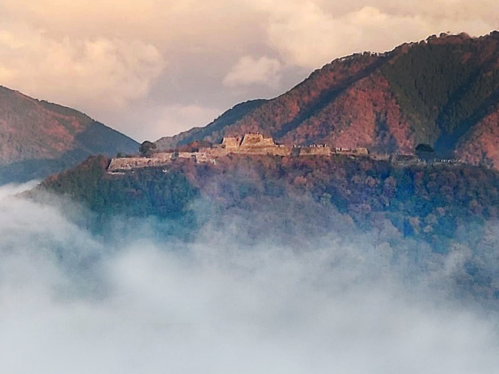 2日目は早朝5時にホテルを出発し、天空の城・竹田城址へ。雲海に浮かぶ天空の城を思い浮かべながら向かいました。この季節が最も雲海に出会えるチャンスが高いとはいえ、どれくらい見られるかと祈りながら進みました。着後、マイクロバスに乗りかえて竹田城を望む展望台「立雲峡」へ。入口から山道を少し登る第3展望台へ。夜が明けてきた中、雲海の上に竹田城の姿がありました。雲海が次々と現れ、まさに絶景の竹田城を望むことができ、早起きして訪れた甲斐がありました。その後、竹田城址へ移動。日本のマチュピチュを呼ばれる竹田城址を見学しました。ともに少し歩きましたが、天空の城を見事に見ることができました。