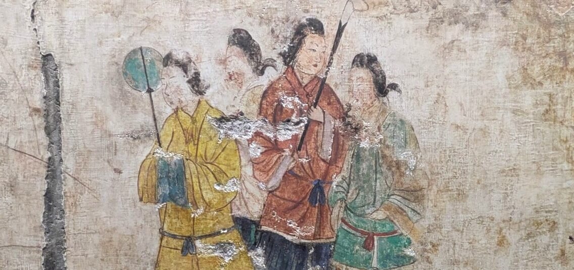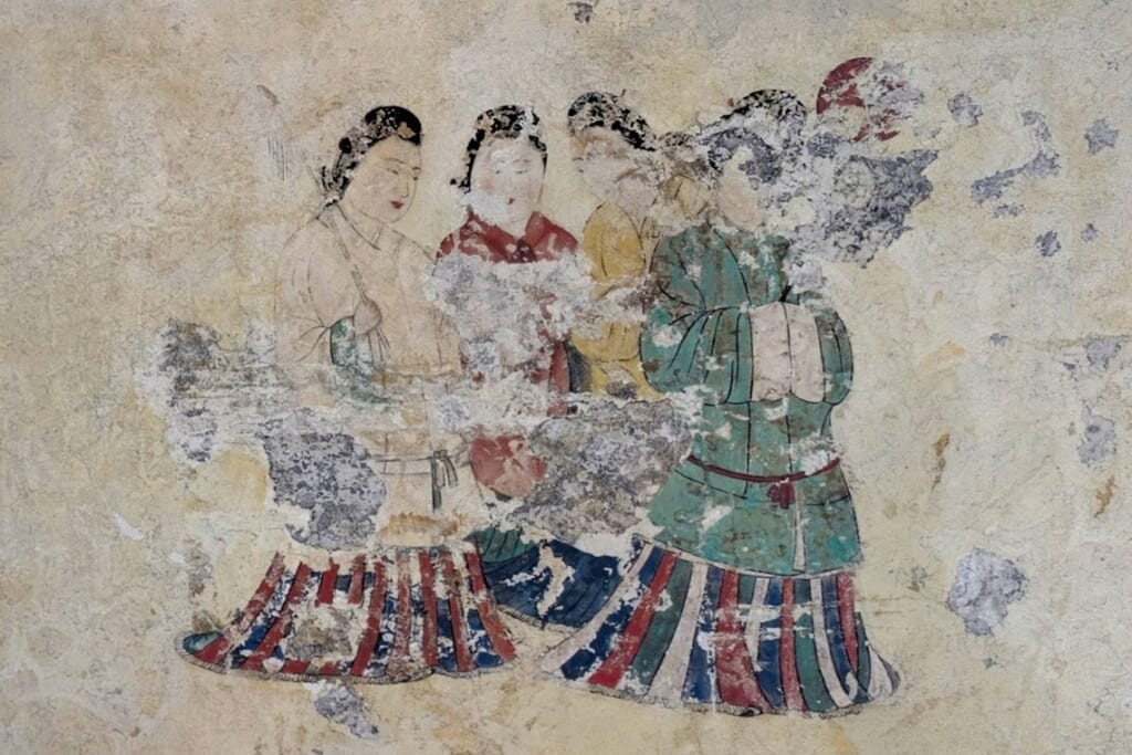 女子群像が描かれた壁画は有名です(これは壁画館のレプリカ)