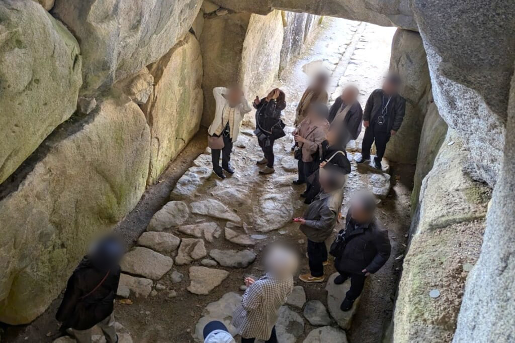 世界遺産登録を目指す「飛鳥・藤原の宮都」、その構成要素である遺跡群と周辺の古墳を、古墳ライターの郡麻江さんとひとつひとつ丁寧に巡りました。お客様も一度は訪れているものが多かったのですが、改めて郡さんや現地の先生方の解説を聞き、より理解を深められた様子でした。来年の今頃は世界遺産になっていることを期待しましょう。