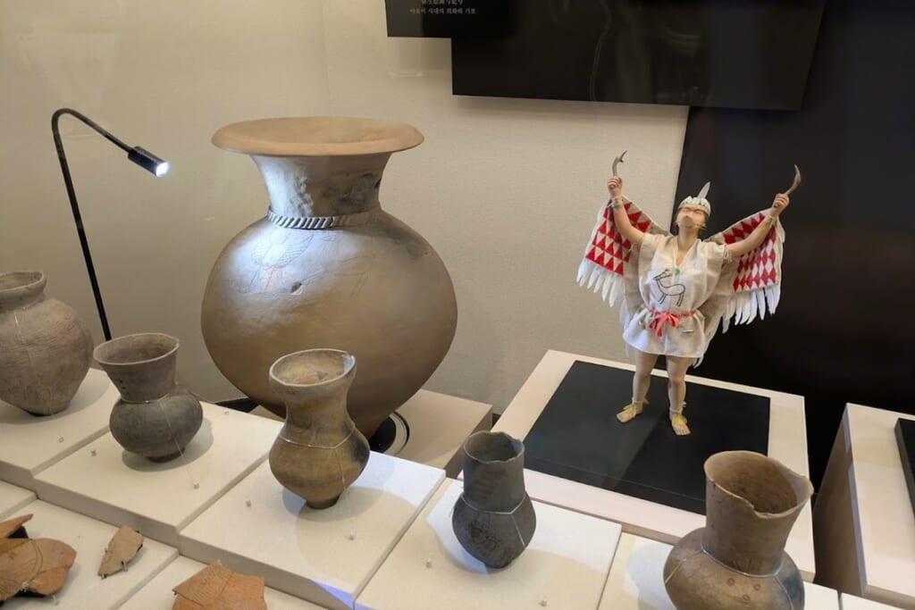 両手を挙げた女性シャーマンが呪術的な儀礼をおこなう姿が描かれた土器