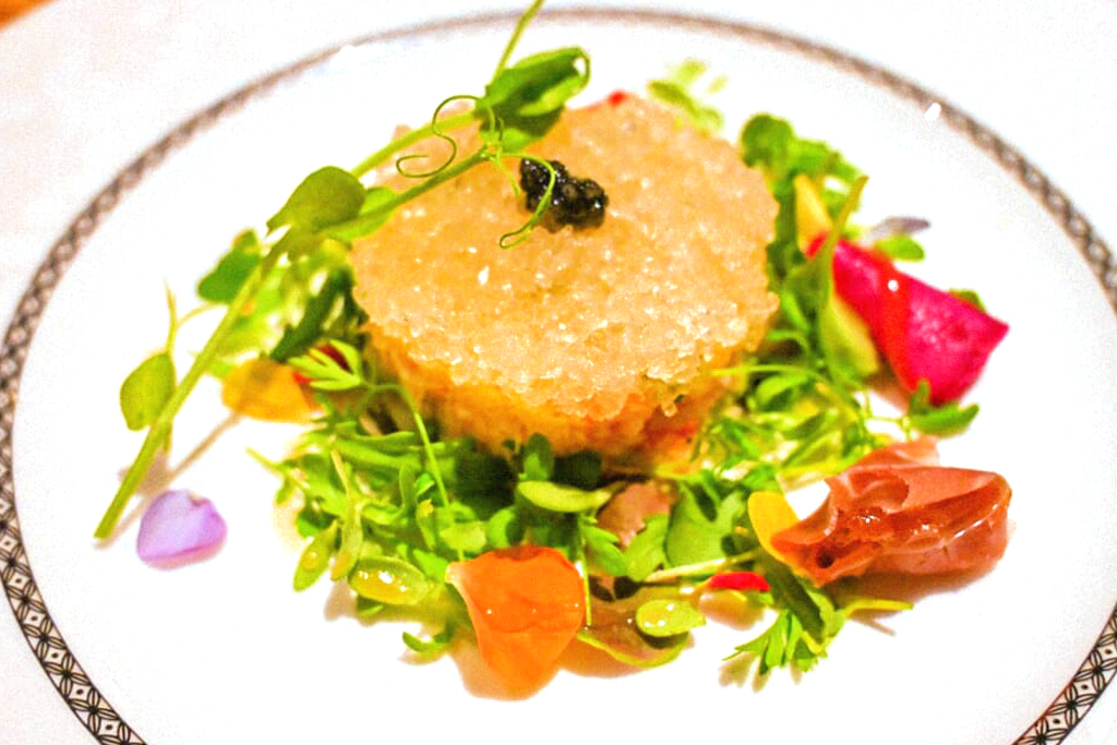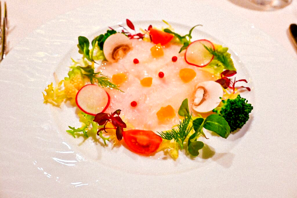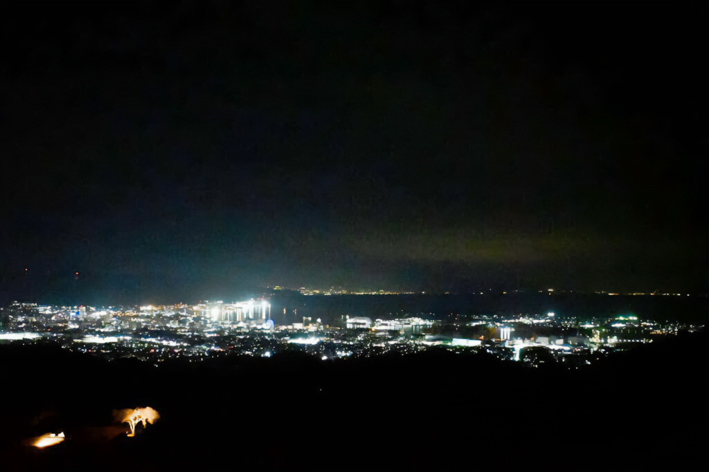 3泊目の「日本平ホテル」は「風景美術館」の異名を持つ名ホテルで、客室の大きな窓いっぱいに富士山と駿河湾が広がります。夕食はホテル最上階のアッパーバンケット「駿河」にて、海抜267mからの眺望を贅沢に味わいながらいただきました。