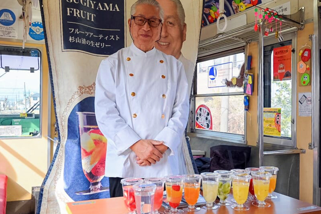 富士市内を走るローカル線「岳南電車」を貸切で乗車しました。全線わずか20分ほどの短い路線ですが、全駅から富士山が見えるという贅沢な路線です。車窓にはのどかな町並みと工場地帯が交互に現れ、その奥に富士山がどっしりと構えている景色は、この路線ならではのもの。往路では車掌さんが沿線の見どころや電車の歴史を語ってくださり、鉄道への深い愛情が伝わってくる解説に皆様聞き入っていらっしゃいました。復路では車内で地元の果物を使った杉山フルーツの生フルーツゼリーをいただきながら、ゆったりとした時間を過ごしました。単なる移動手段ではなく、地域の暮らしや風景を味わう体験として、とても印象に残るひとときとなりました。