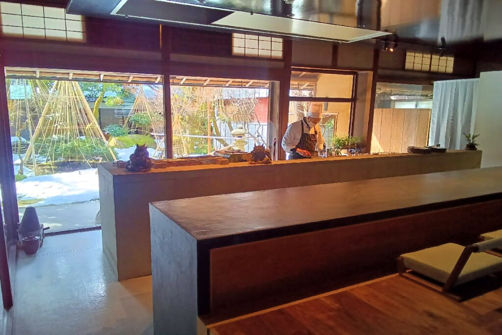 最終日の昼食は、高岡・山町筋の国登録有形文化財・佐野家住宅を改装したレストラン「アオラキ」にて。海外の日本大使館で公邸料理人を務めた大角シェフと、フレンチの横田シェフが生み出す和洋融合の料理は、歴史的建築の空間とともに、旅の締めくくりにふさわしい美食体験となりました。