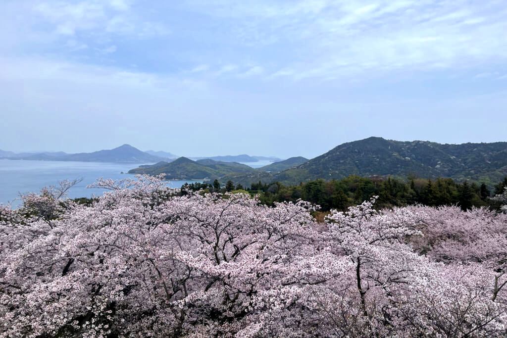 ニューヨーク・タイムズ電子版にて「世界で行くべき旅行先」として選ばれた名所です 。山頂部を埋め尽くす約1000本の桜越しに、瀬戸内海の多島海を眺める景色はまさに幻想的でした 。今回は、混雑の少ない平日の午前に訪れる行程で、美しい景色をゆっくり心ゆくまでお楽しみいただきました 。