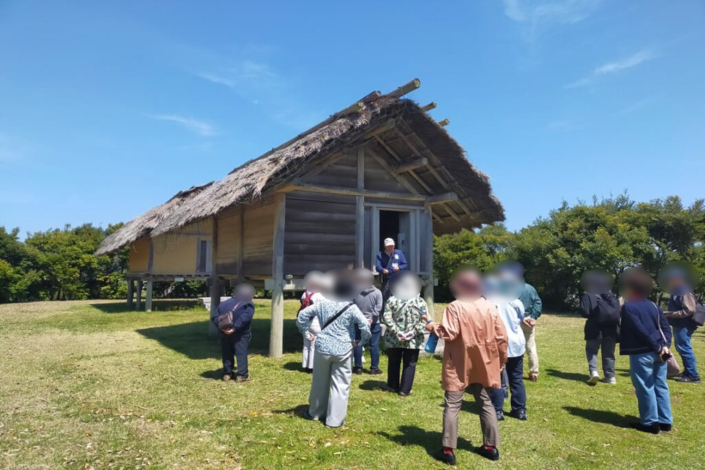 原の辻遺跡にて、当時を再現した住居や倉庫、祭儀場の跡をご案内いただきました