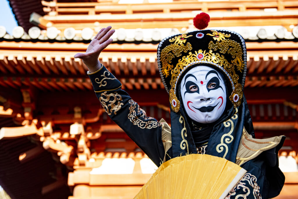 「変面」は300年以上の歴史を有し、「中国伝統芸能の絶技」と呼ばれています。元々は四川省の地方劇「川劇」で用いる演出手法として発展し、現在は劇中だけでなく、独立した「変面ショー」として演じられるようになりました。次々と変化するお面により登場人物や心情の変化を表し、その仕組みは門外不出とされています。神秘的な芸能の魅力は中国だけでなく、日本や世界中で高く評価されており、2006年には中国の無形文化遺産にも登録されました。お面の変化はもちろん、伝統芸能の美しい型や、お面によって変わる役柄や動きの変化にもぜひ注目してご覧ください