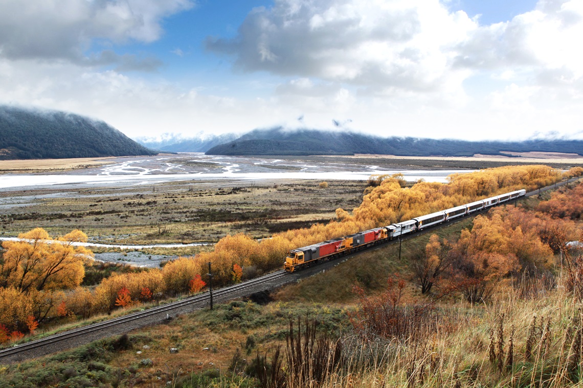 ニュージーランド南島を横断する壮大な景観を楽しむことができるトランツアルパイン鉄道。今回はクライストチャーチから最高地点(標高約737m)のアーサーズパスまでの片道区間を乗車します。広大なカンタベリー平野を走り抜けると、遠くにはサザンアルプスの山々が見えてきます。ワイマカリリ川の渓谷を渡り、急峻な山々と深い峡谷が続く車窓をお楽しみください。