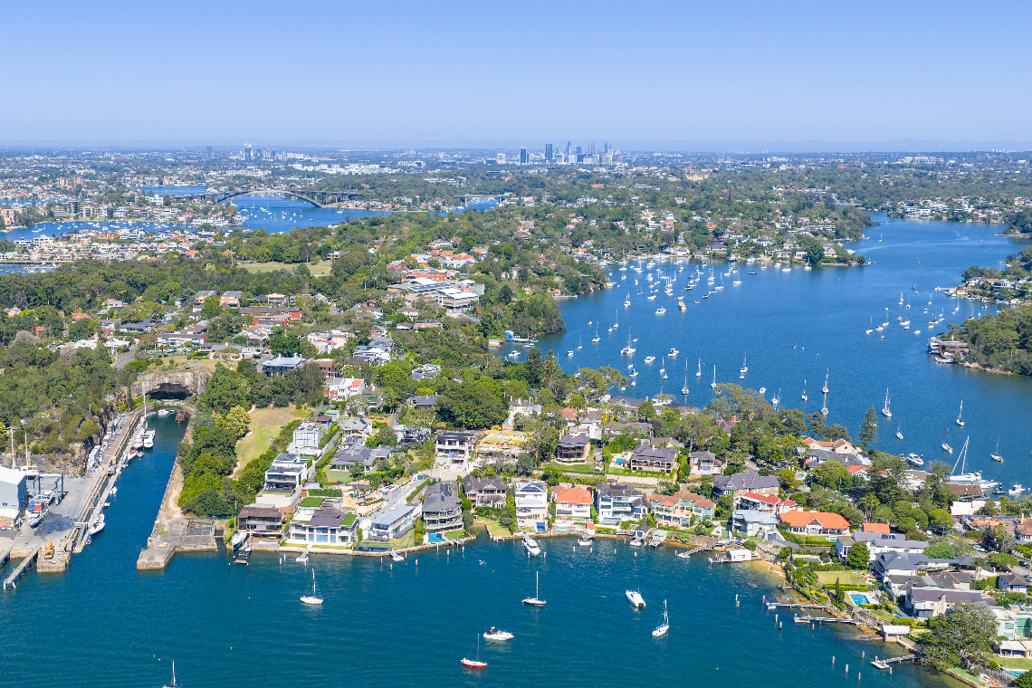 水上から見渡すオペラハウスとハーバーブリッジ、シドニー発祥の地