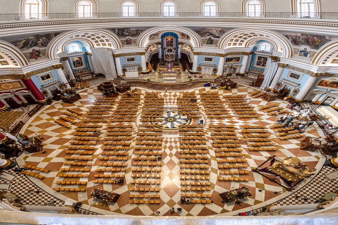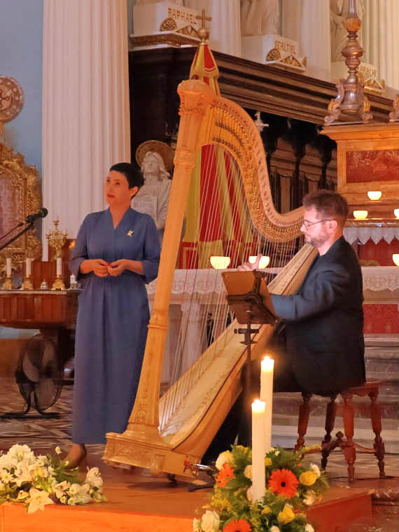 ①マルタ島・奇跡のモスタドームで教会コンサート。ソプラノとハープの音色をご堪能ください。