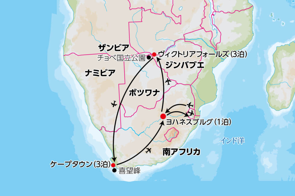 【2026ゴールデンウィーク】3連泊で楽しむ 南部アフリカ周遊の旅【10日間】