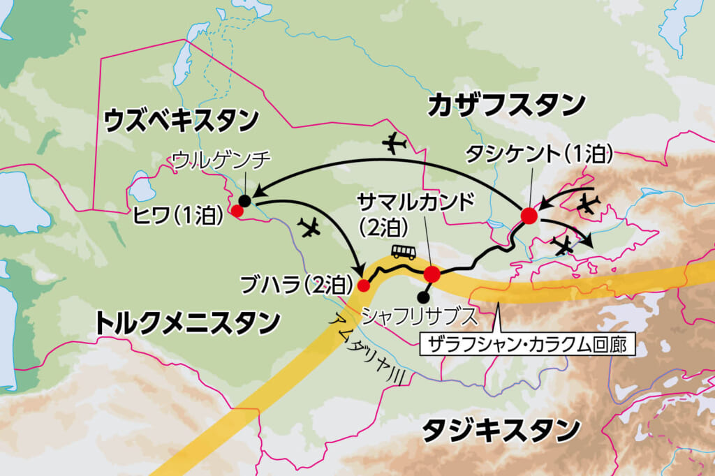 - 英雄ティムールの故郷、世界遺産シャフリサブスも訪ねる、ワールドこだわりのルートです。