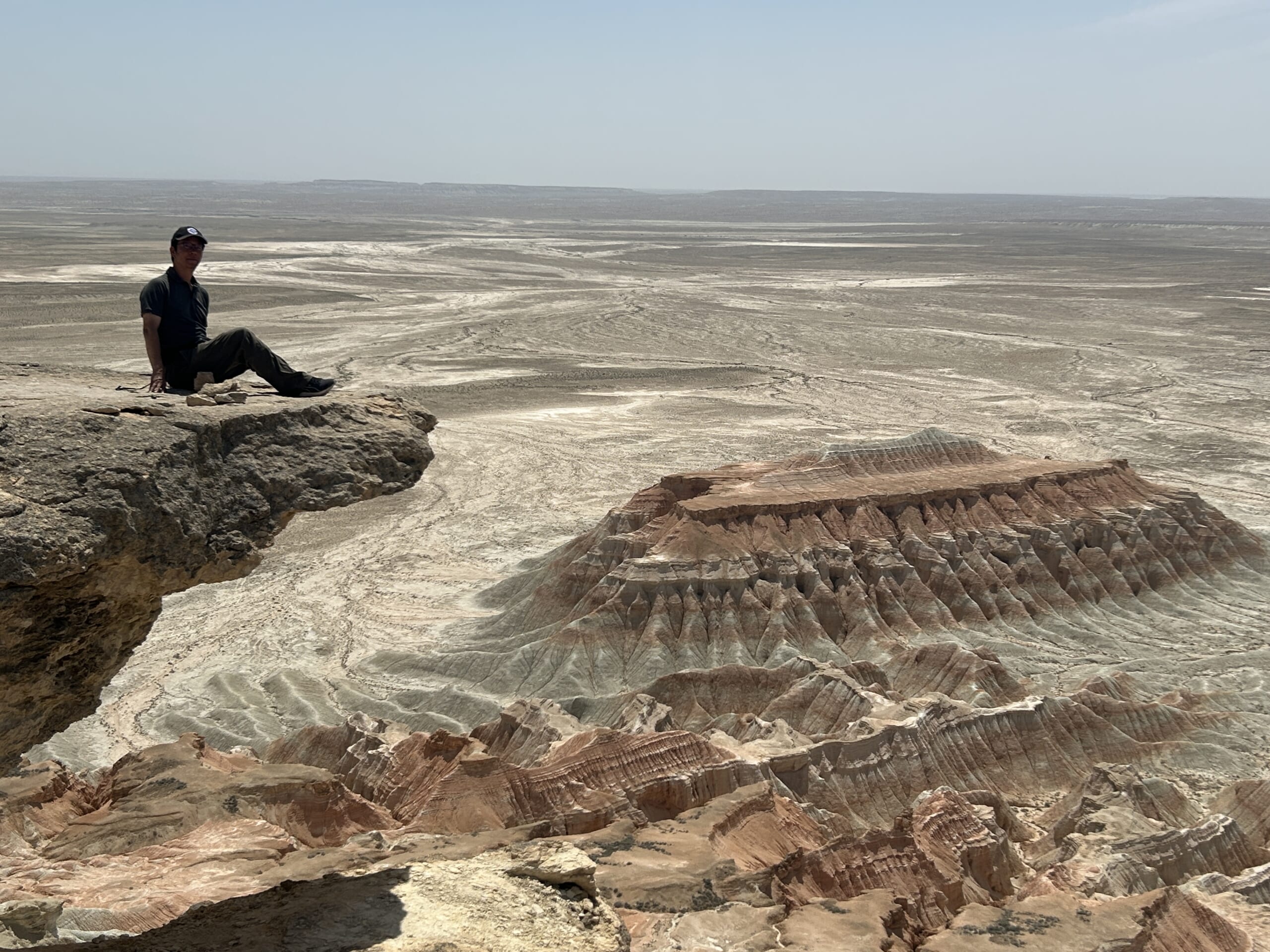 通常のツアーではあまり訪れない、カラクム砂漠の奥地まで足を伸ばします。カスピ海に面するトルクメンバシの郊外に広がる、知られざるヤンギ・カラ渓谷へ。隣国のカザフスタン・ウスチュルト台地のように、大陸移動によって失われた古代テチス海の海底部分にあたり、堆積したチョーク層が白亜の大地の絶景を造り出しています。断崖の上から俯瞰すると、赤と白の堆積層がグラデーションのような美しいコントラストを描き、観るものを圧倒します。