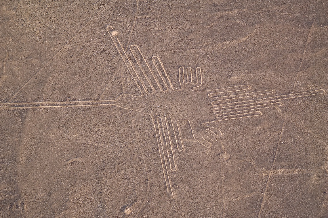 アンデス山脈と太平洋との間の地面に幾何学的な動植物の絵が石や砂利を用いて描かれている「ナスカの地上絵」。未だに何の為に絵が描かれたか不明な点も多い作品群ですが、近年、日本の山形大学の研究チームによってさらに別の場所から地上絵が発見され、注目を集めています。