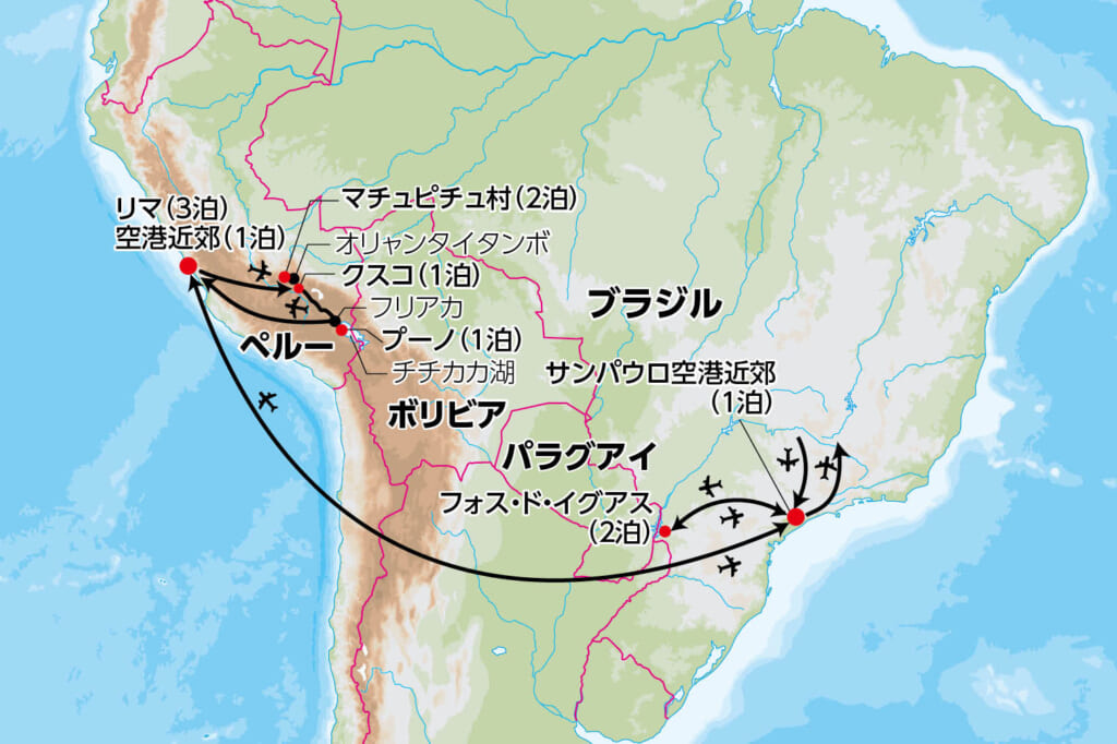 (注1)南米内のフライトスケジュールは変更となる場合があります。また、その場合は観光順序や食事も変更になりますので、予めご了承ください。