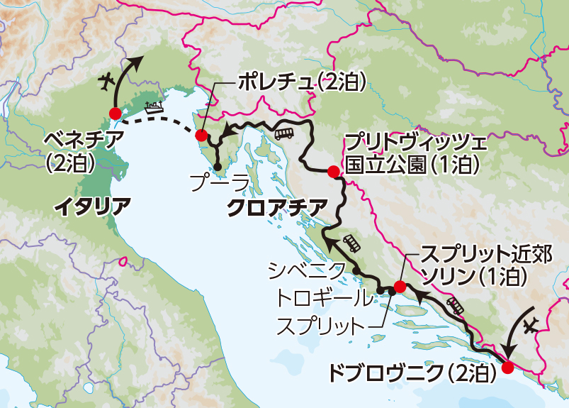 ドブロヴニク08:30発 スプリット ソリン17:30着