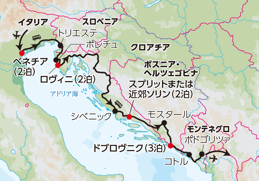 - イストラ半島の小さな町や、コトル、モスタールなど、アドリア海沿岸に点在する珠玉の町々を巡ります。