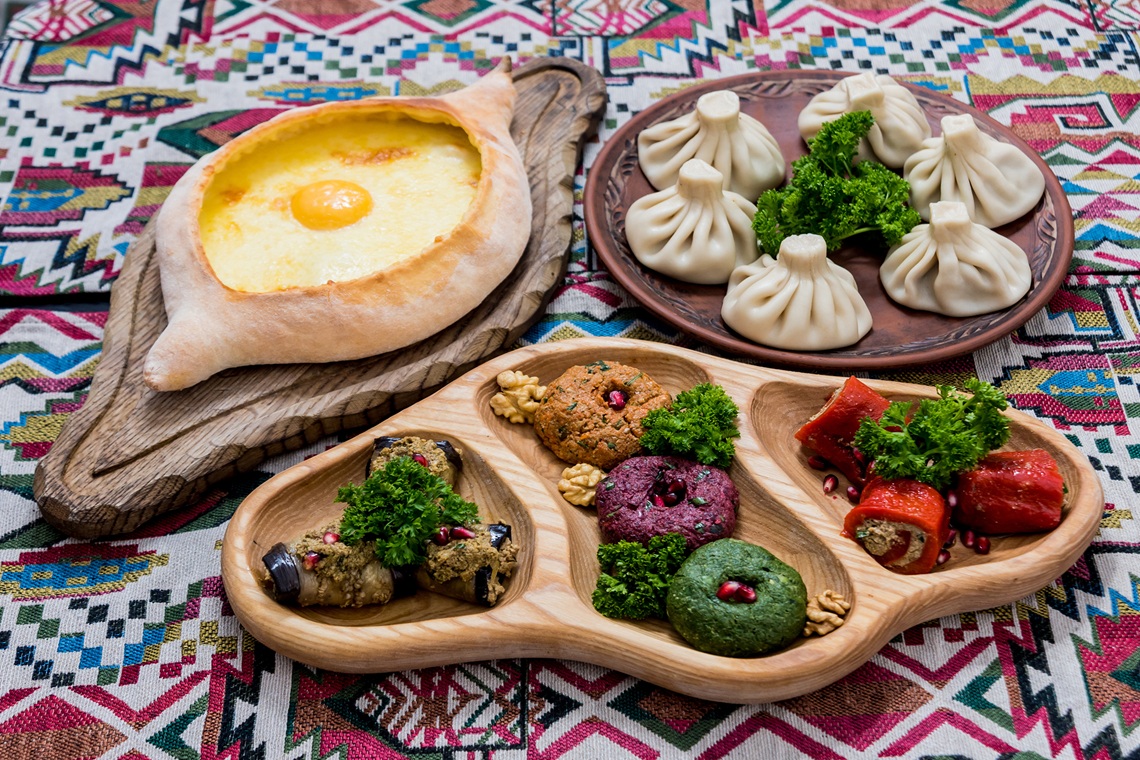ジョージアの旅では、東西文化の影響を受けた独自の食文化も大きな魅力です。香り豊かなスパイスを使った料理は日本人の舌にも合い、土地ならではの味わいを楽しめます。ワイン発祥の地として知られるカヘティ地方では、約8,000年の伝統を受け継ぐアンバーワイン造りの工房を訪問。土器「クヴェヴリ」で自然発酵させたワインは、フルーティでありながらスパイシーな奥深い味わいが特徴です。