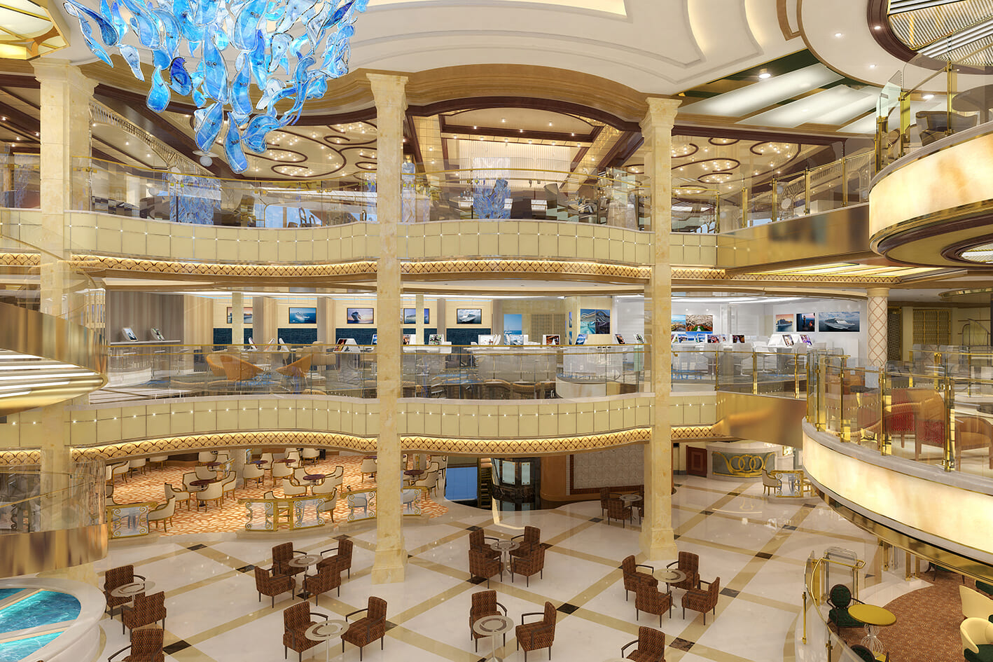 - ロイヤルクラスの客船「スカイ・プリンセス」に乗船し、多彩な船内ライフをお楽しみください