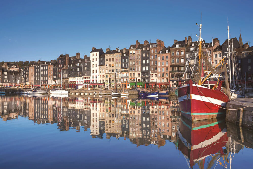 セーヌ川の河口に位置する小さな港町オンフルール。水辺に並ぶ古色を帯びた家並みやヨットが浮かぶ旧港の風景が、印象派の画家たちの恰好の題材となりました。ここに停泊中は白亜の断崖エトルタへ足を延ばし、モネやクールベが繰り返し描いた絶景をご覧ください。