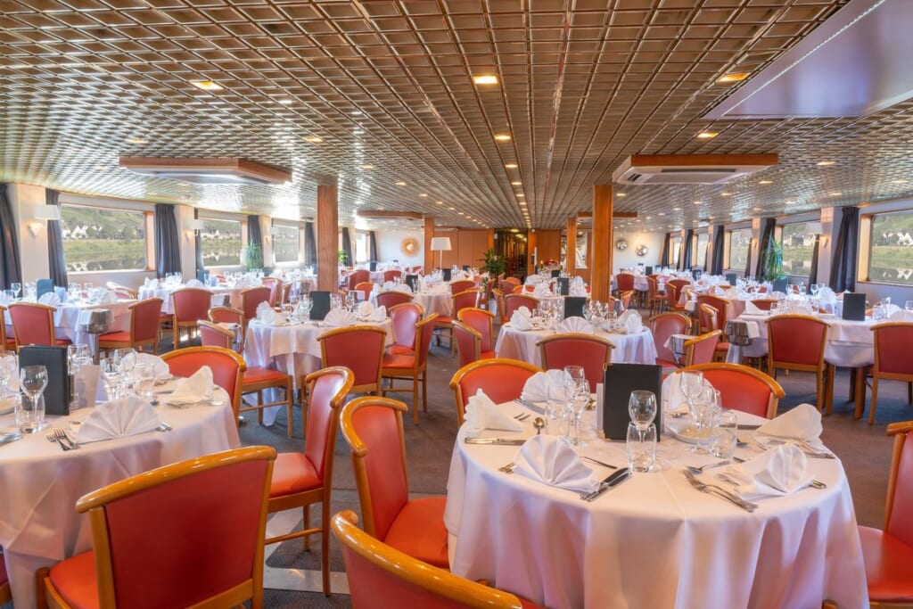 フランスの老舗クルーズ会社、クロワジ社が運航するリバークルーズ船、「ヨーロッパ号」で、のんびりと12泊13日のクルーズを楽しみます。客室は約13平方メートルとコンパクトながら機能的で清潔感があります。3層構造の船で、このたびはアッパー、ミドル、メインのいずれかをお選びいただけます。