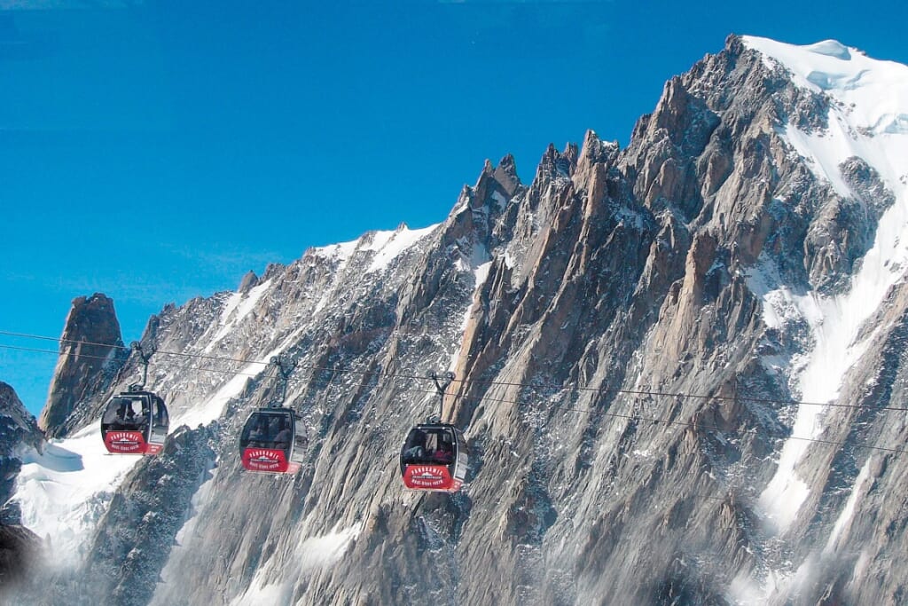 - フランスからイタリアへ、イタリアからスイスへ、ロープウェイやゴンドラでの空中散歩で2つの国境越えを楽しみます。