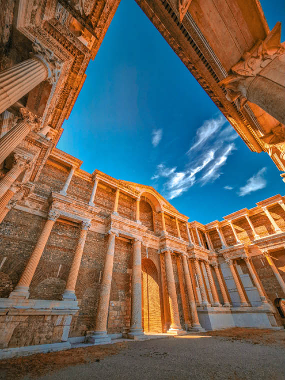 トルコの西部にあるサルディス遺跡は、古代リディア王国の首都として栄えた歴史的な場所です。古代世界で初めて金貨が鋳造された場所として知られ、経済史において重要な役割を果たしました。訪れる人々は、壮大なアルテミス神殿や、保存状態の良いローマ時代の浴場とジムナジウムの複合施設を見ることができます。また、ビザンチン時代の教会跡もあり、異なる時代の文化が交錯する様子を感じられます。