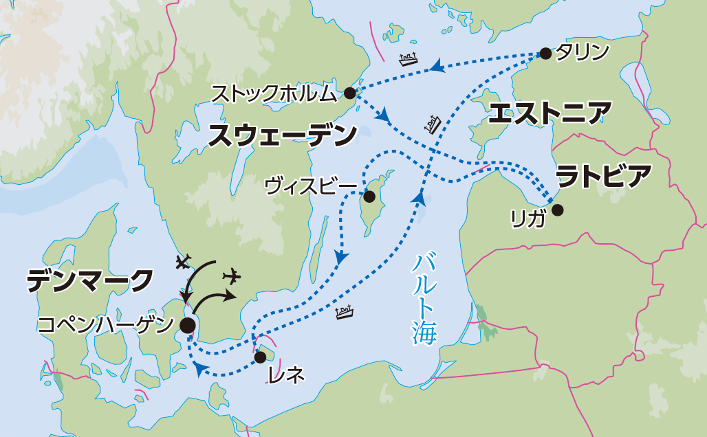 - ヴィスビー、タリン、リガと世界遺産の町々の歴史に触れ、更に世界初のユネスコ認定「世界工芸地域」の工芸とアートの島ボーンホルムも訪れる、クルーズならではのルートです